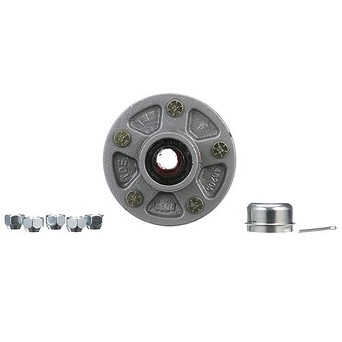One piece cast hubs complete with pregreased bearings, seals, dust caps, cotter pin and lug nuts. 1/2"-20 Studs.Inner Bearing Code: L44649, Outer Bearing Code: L44649, Inner Race Code: L44610, Outer Race Code: L44610, Seal Code: 125255UCLug nuts on a 4.5" bolt pattern. Note: The UHI hub uses tapered roller bearing cones and cups. This configurationrequires a minimal amount of end play that is provided at the time of assembly.
