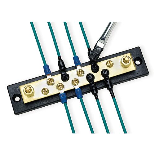 Forms a protective dielectric coating on electrical connections. Seals out moisture, prevents corrosion. Adheres to all metal, plastic, vinyl, rubber, and composite surfaces. Stops screws from loosening due to vibration. Safe and easy to use and is fast drying. Applicator brush built into cap.