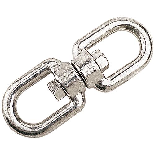 Swivels link together two parts that have separate rotational directions reducing knotting or twisting and relieving stress. Constructed of corrosion resistant investment cast 316 stainless steel. These eye to eye swivels are ideal for anchor and mooring lines. Large eyes accommodate shackles for chain connections or eye splices with thimbles for anchor rodes.