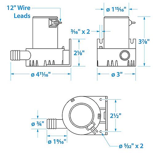 This mini bilge pump is the perfect solution for removing water out of small areas such as skiffs, jet boats or PWCs. Constructed of white ABS plastic with an easy to clean twist off strainer. Seachoice is committed to delivering quality marine accessories and OEM replacement parts to satisfy fishing, boating and watersports enthusiasts worldwide. Seachoice is run for and by boaters offering a wide-ranging product line while remaining affordable. 450 GPH mini bilge pump evacuates water fastPorts: ¾ inchSize: 3 inch x 4 inch12 Volts Strength1.5 Amps StrengthManufacturer part number 50-19261