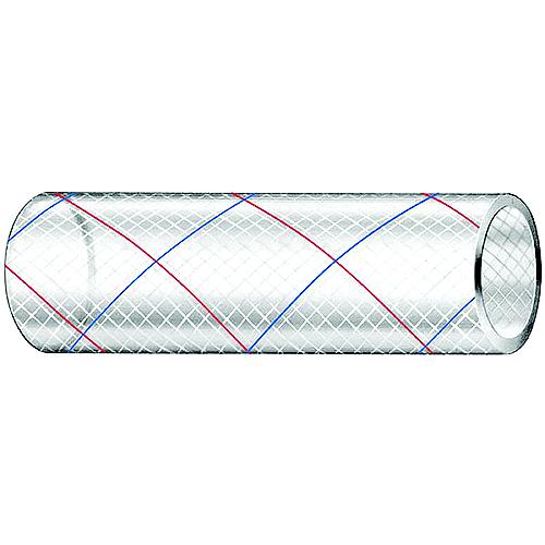 Clear reinforced PVC FDA approved hose for potable water uses. Tasteless, odorless and non-toxic. Series 164 for cold water use has a blue tracer, 150 psi/wp. Series 162 for cold or hot water use has a red and blue tracer, 175 psi/wp. Not recommended for use below the waterline. OPS Temp 20° to +150° F. 2 Year warranty.