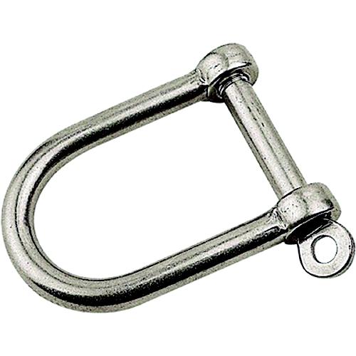 Constructed of forged 316 stainless the wide D-style shackle has straight sides with a U-shape rounded bottom. Designed for rigging applications with bi-directional loads. The U-shaped end can handle heavy loads, loads on the straight sides, however, may cause bending. The wide D-Shackles provide extra width for maximum mounting area. Ideal for use on mooring buoys.