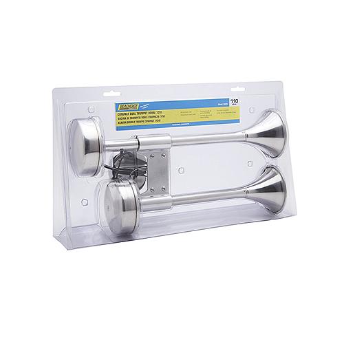 This Seachoice Compact Dual Trumpet Electric Horn provides a boat with a classic nautical look, and it delivers a loud, clear tone. Its entire exterior is corrosion-resistant 100% stainless steel that will retain its appealing finish and deliver reliable performance in harsh marine environments. The diaphragms on the twin horns are Type 304 stainless steel. This 12-volt (7 max amps) horn measures 16-In. L x 7 ½-In. W x 4-In. H. Seachoice is committed to delivering quality marine accessories and OEM replacement parts to satisfy fishing, boating and watersports enthusiasts worldwide. Seachoice is run for and by boaters, offering a wide-ranging product line while remaining affordable. Provides a classic nautical look and delivers a loud, clear toneExterior is corrosion-resistant 100% stainless steelTwin diaphragms are Type 304 stainless steel12-volt, 7 max amp draw16-In. L x 7 ½-In. W x 4-In. H