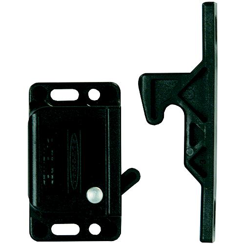 This is a secure concealed catch used on many styles of cabinets and doors. It is operated by pulling on the cabinet then latches securely into place when the cabinet is closed. Includes mounting screws and large strike (Part # 70445). Lifetime Warranty.