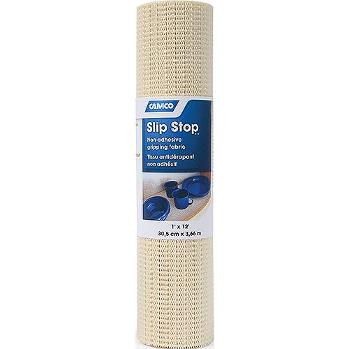 Camco RV 1' x 12' Cream Slip Stop keeps everything safe and secure by preventing slipping and sliding. Washable, easily trimmed material works in tool boxes, rugs, van floors, shelves, dash boards or anywhere things slide around or rattle in your RV. Use as a liner between plates, cups and appliances. Prevents slipping and sliding1' x 12' roll
