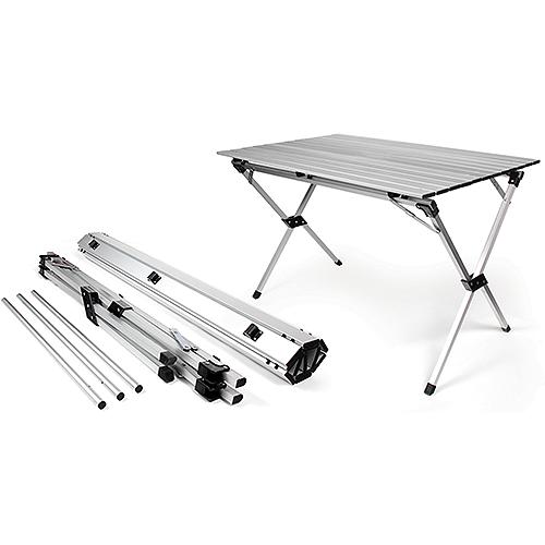 Portable and functional, lightweight and durable, the Aluminum Roll-Up Table is the perfect addition to any campsite, tailgate or picnic. It is constructed of hollow aluminum, making it lightweight and easy to carry. The table compacts into five separate pieces: a roll-up top, (3) cross bar supports and folding legs. The parts all fit into the included storage bag, which measures 45" long, making it small enough to fit under your RV, in your trunk or in the back of your car. Multi-Purpose: Ideal for RVing, camping, tailgating and picnics; comfortably seats 4-6 peopleMeasurements: 43.5" (L) x 27" (W) x 28" (H) when assembledEasy-to-Store: Breaks down into 5 compact partsIncludes: Convenient storage bagDurable Construction: Constructed of lightweight aluminum; table is weather and rust resistant