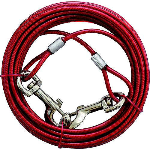 Cable with clipsAircraft grade steel cableWeather resistant PVC vinyl coveringSwivel clips on both endsFor dogs up to 100 lbs
