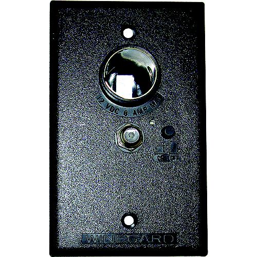 Black wall plate/power supply to operate your Winegard RV antenna with outdoor receptacle. Wall plate/power supply provides +12VDC to antenna and +12 volt receptacle, as well as antenna signals to two TV sets. Cable input from outdoor receptacle connects to wall plate and may be switched so either antenna or cable signals may be watched.
