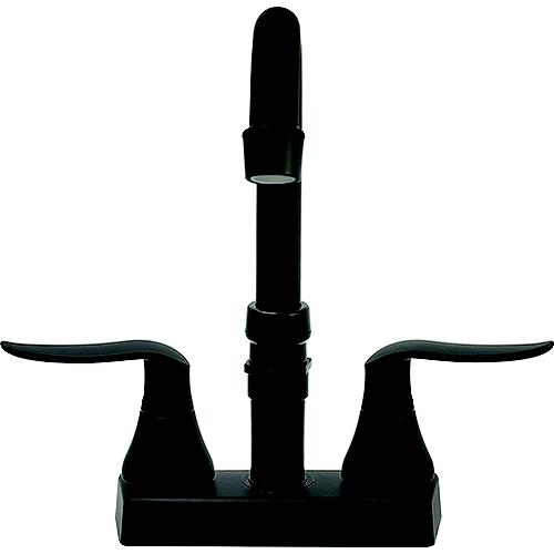 Features hot and cold handles for quick, precise control. High spout for large dishes. Elegant design blends with all design styles. Center set installationHot and Cold Lever Handles2-holesStrong ABS provides leak-free operationCorrosion and rust resistantCertified lead-freeTarnish resistantFlow Rate: 1.8 GPMSpout Reach 4.92"Material: ABSLimited Lifetime Manufacturers Warranty