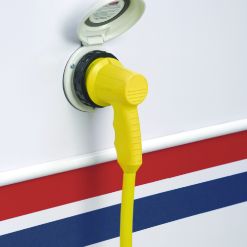 Convert existing 30A or 50A detachable power cord from a straight connection to a right angle connection. Also includes sealing collar for maximum moisture protection between connector and cordset.