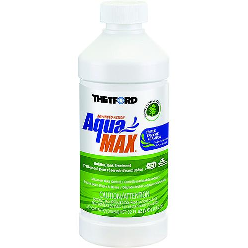 AquaMax®, the no Formaldehyde, no Bronopol holding tank treatment.AquaMax® Holding Tank Treatment's advanced enzyme powered formulas neutralize odors and accelerate waste digestion to prevent clumping, clogging and tank residue, all at the same time. Thetford's beneficial probiotic treatments are Bronopol Free and Formaldehyde Free to provide campground friendly and California compliant solutions. Formaldehyde FreeBronopol FreeNeutralizes odorBreaks down waste to prevent clumping, clogging and tank residueEnzymes optimized for MAX performanceBeneficial probiotics; good bacteriaSeptic system safeCampground and Marina FriendlyCompliant with all current regulationsConvenient family of options; liquids, dry granules and Toss-Ins® One dose treats a 40-gallon holding tank