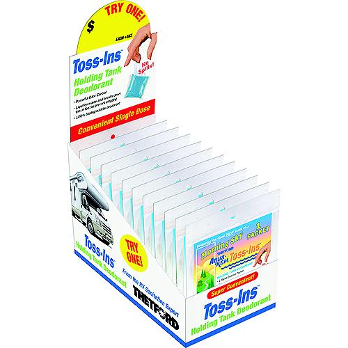 Holding tank deodorant in water soluble packs, conveniently pre-measured. Powerful odor control and superior waste digestion. Fresh pleasant scent. Specially formulated for RV and marine holding tanks and all portable toilets. Biodegradable. Septic tank safe.