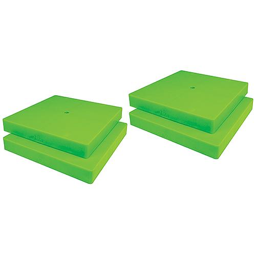 Distributes vehicle weight more evenly-creates a more stable / secure surface Distributes vehicle weight more evenly-creates a more stable / secure surfaceSafe, versatile, and easy to useEasy to clean heavy duty polypropyleneCap provides a flat mounting surfaceHi-Vis GreenPad / Cap Size: 8-1/2" x 8-1/2" x 1-1/8"Includes a durable carry/storage bag Do not stack more than 4 high. Do not use with any other leveling block system.